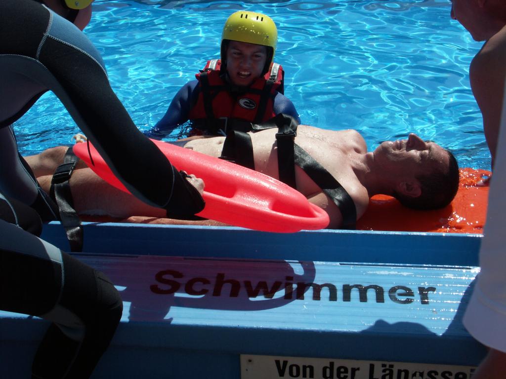 Spaß im Wasser hatten nicht nur die Badegäste, sondern auch die Mitglieder der WW-Kinder- und Jugendgruppe. Die jüngsten zeigten mit ihren Trainern im flachen Wasser ihre ersten Schwimmkenntnisse wie im Kreis schwimmen, strampeln und abtauchen. Die Jugendlichen waren bereits fit im Rettungsschwimmen: sie schwammen in Kleidung und schleppten sich gegenseitig ab, auch rückwärts. Großes Interesse bei den Besuchern fand auch die WW-Ortsgruppe Waltendorf mit Rettungsschwimmeraktionen mit Rettungsboje, Wurfsack und dem Spinnboard.